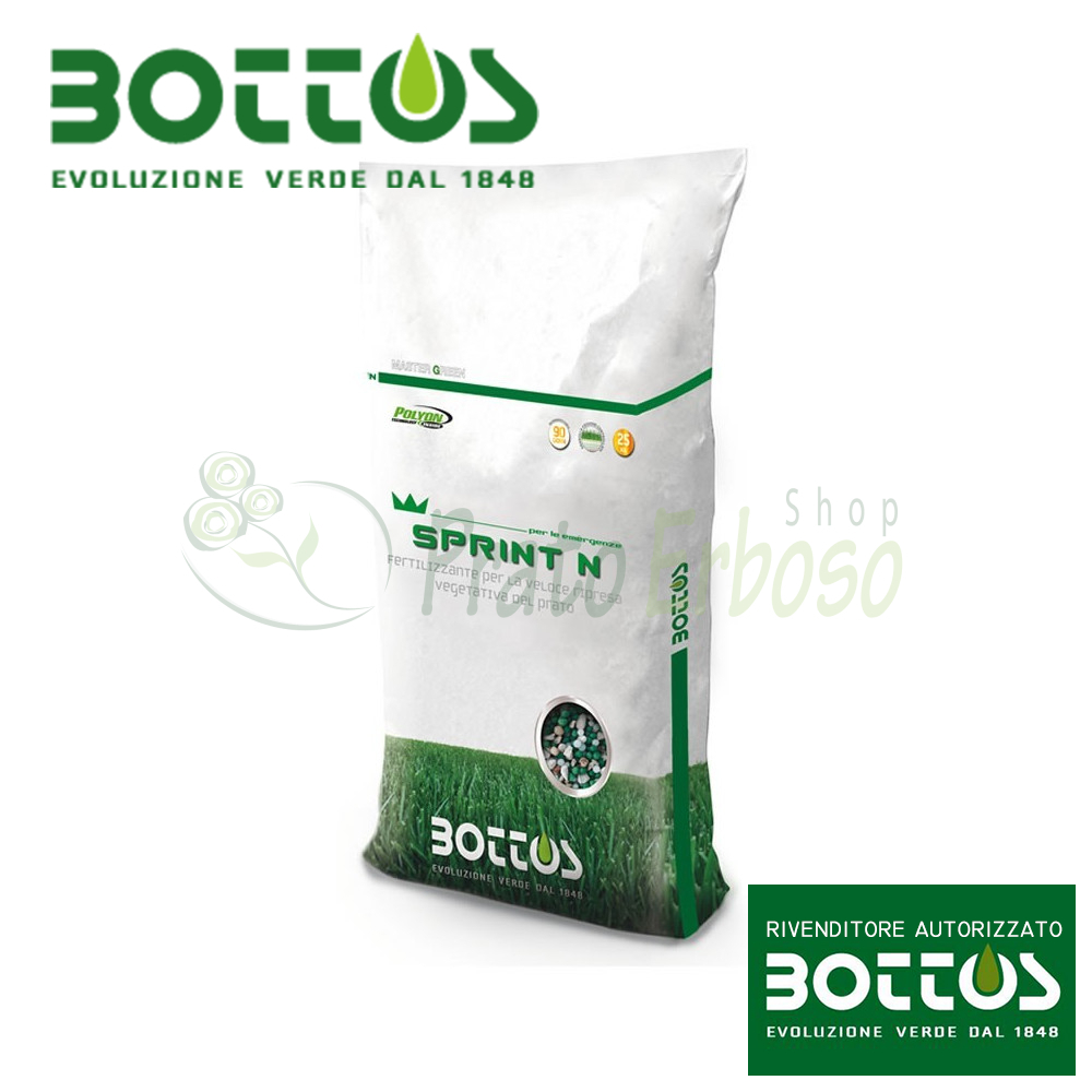 SPRINT N Bottos 27-0-14 est un engrais particulier pour pelouses à libération programmée avec 52% d'azote à libération programmée de Polyon.