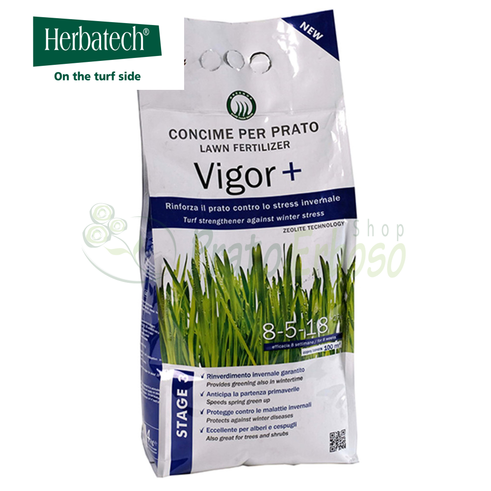 L'engrais Vigor Plus de la gamme Herbatech Green Up combat le stress et tonifie pendant les périodes difficiles. Vigor Plus est l'aliment pour les périodes de stress ou de retard de croissance, typiques des saisons estivales et hivernales. Il renforce les parois cellulaires du gazon, favorisant la récupération végétative et assurant, grâce à la zéolite et au fer, la couleur même en hiver. Il anticipe le verdissement printanier et augmente la résistance du gazon aux maladies, au temps sec et au stress thermique.