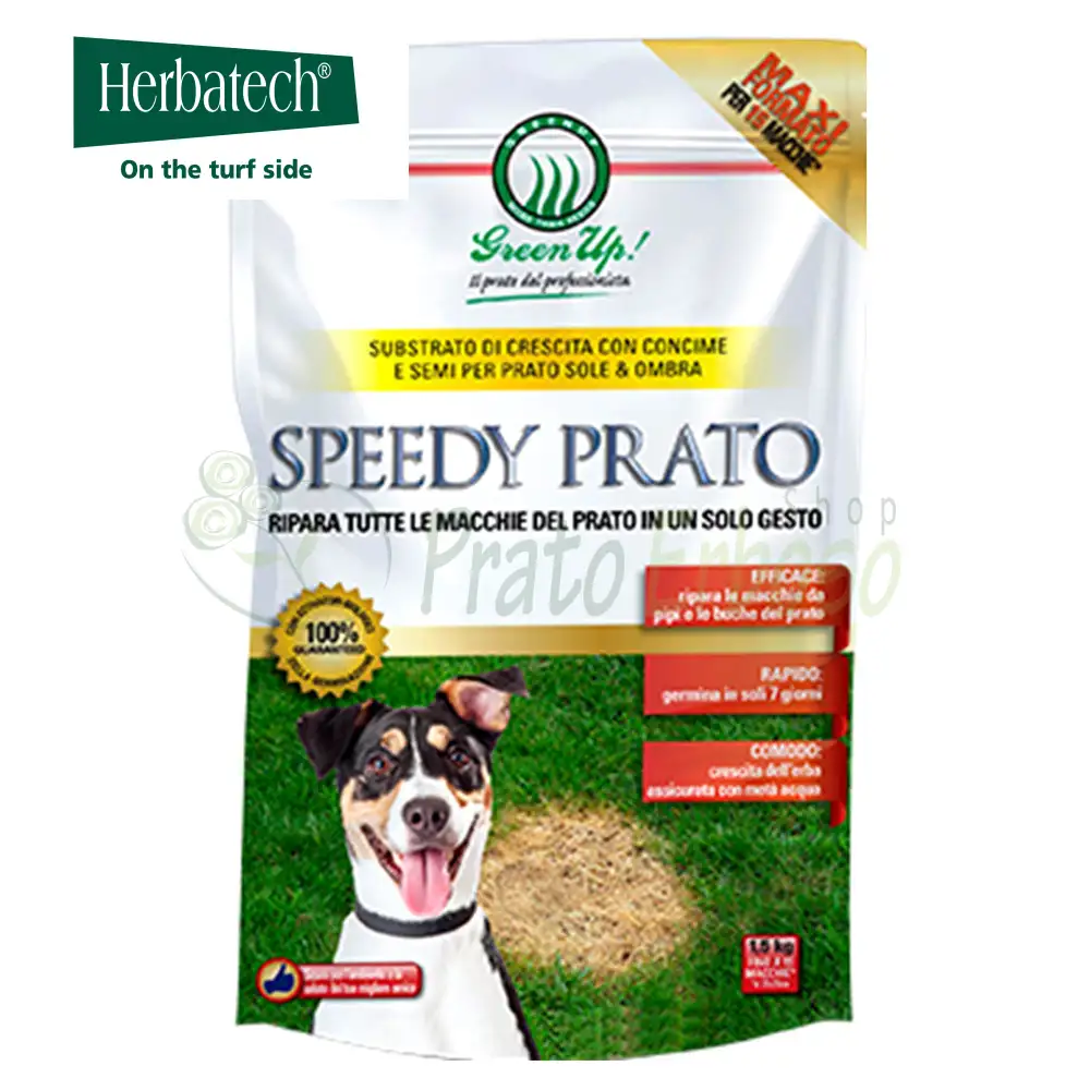 Speedy Prato de la gamme Green Up d' Herbatech est une combinaison de semences, d'engrais pour pelouse et de substrat de croissance.