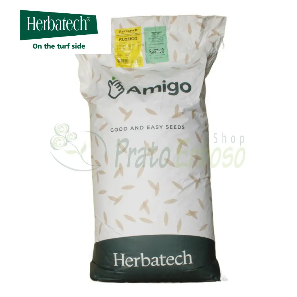 Les graines Rustico de la gamme Amigo d' Herbatech sont un mélange de fétuque, de pâturin des prés et de ray-grass, pour la création d'espaces ornementaux, de jardins, de parcs et de parterres de fleurs.