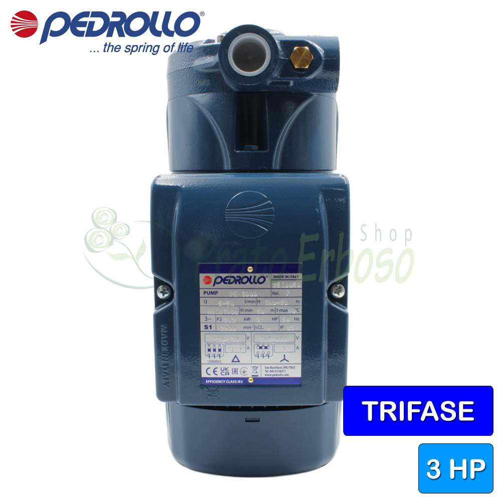 Le PQ 3000 doit être alimenté par une tension triphasée, a une puissance de 3 CV et la température du liquide à pomper varie de -10 degrés centigrades jusqu'à +90.