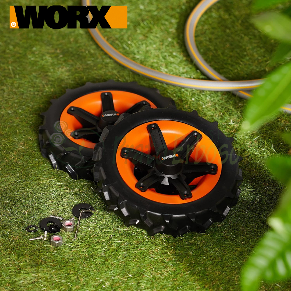 Les roues tout-terrain permettent aux robots Worx Landroid de s'attaquer à des terrains difficiles où l'herbe est clairsemée.