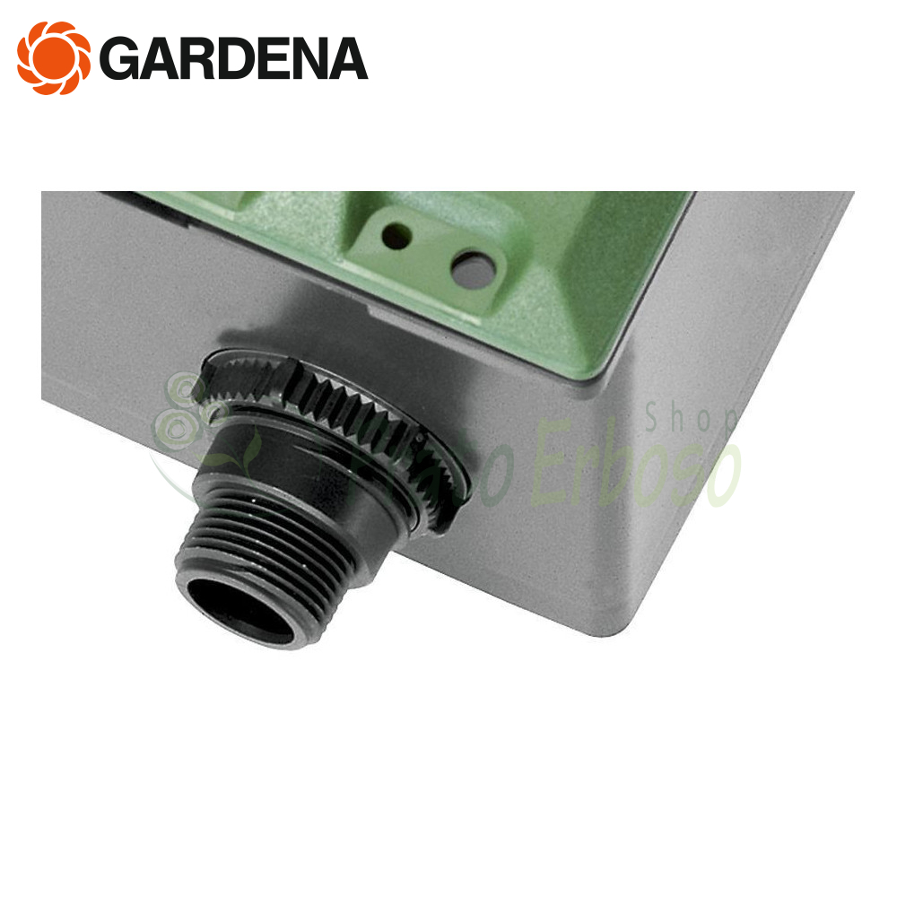 Le boîtier de vanne pré-câblé Gardena V1 est doté d'un raccord fileté mâle de 1 pouce.