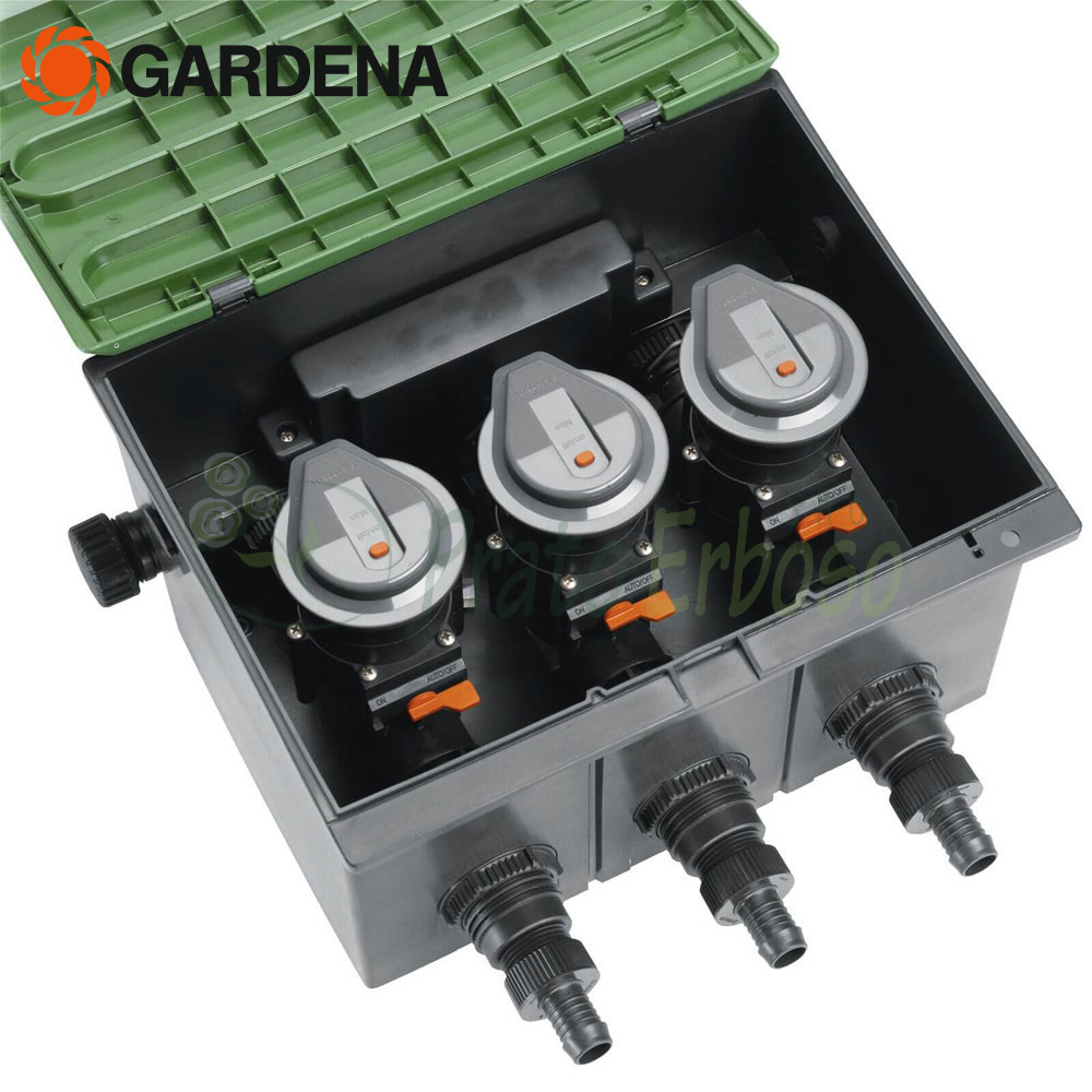 Le boîtier de vannes pré-câblé Gardena V3 1255-20 vous permet d'installer jusqu'à 3 électrovannes souterraines.