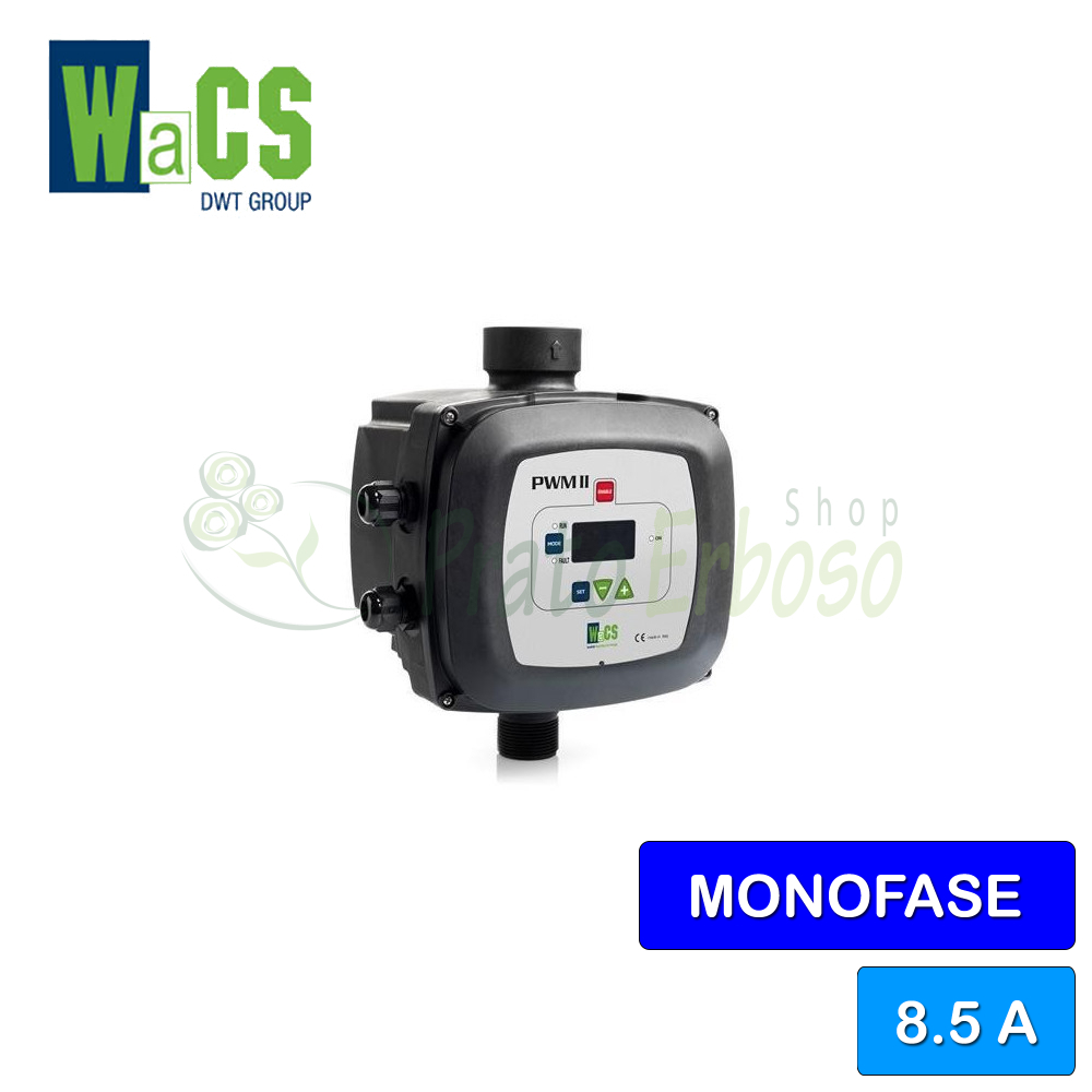 Le PWM II 230 1-BASIC / 8.5 utilise une alimentation monophasée pour les pompes monophasées jusqu'à 1,5 CV fournissant un courant maximal de 8,5 ampères.