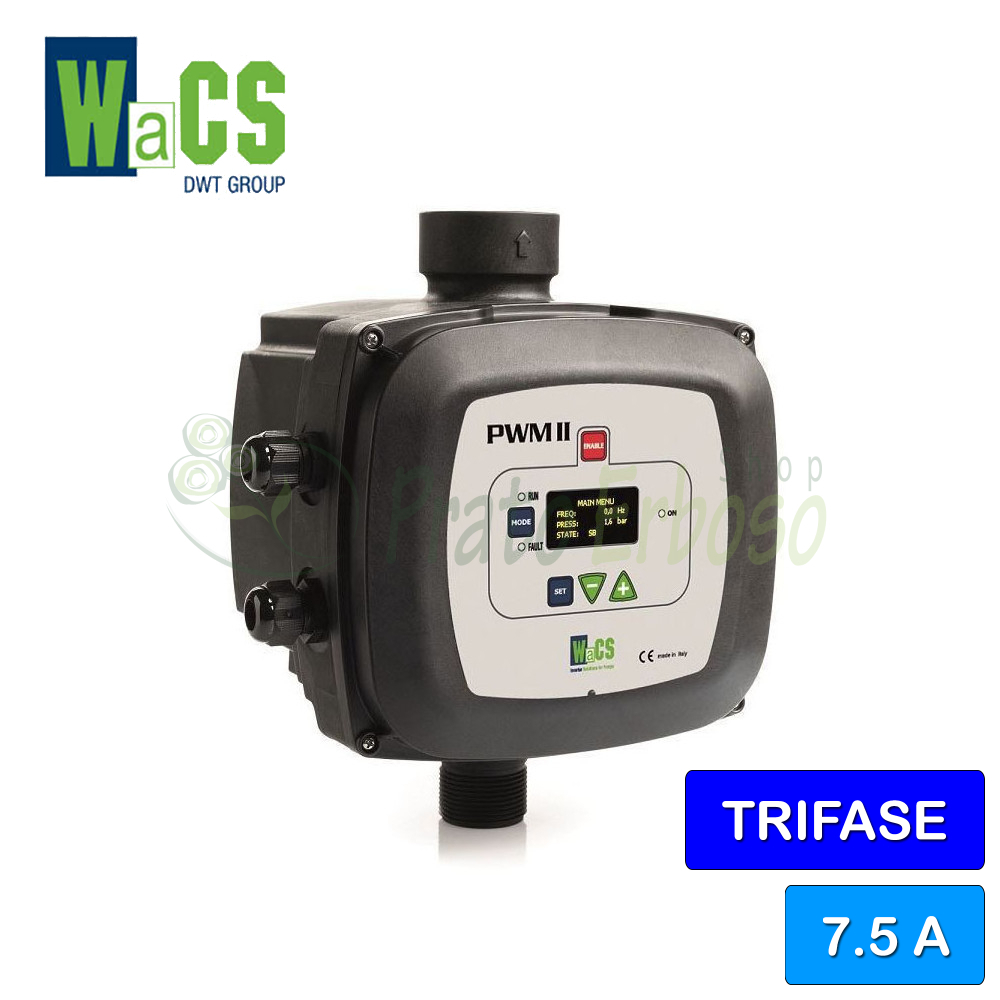 L'onduleur WaCS PWM II 400 D/7.5 est inséré dans le circuit de refoulement d'une pompe et la contrôle pour maintenir une pression constante, gérer sa mise en marche, son arrêt et ses dysfonctionnements en fonction des besoins d'utilisation du système et des conditions hydrauliques générales.