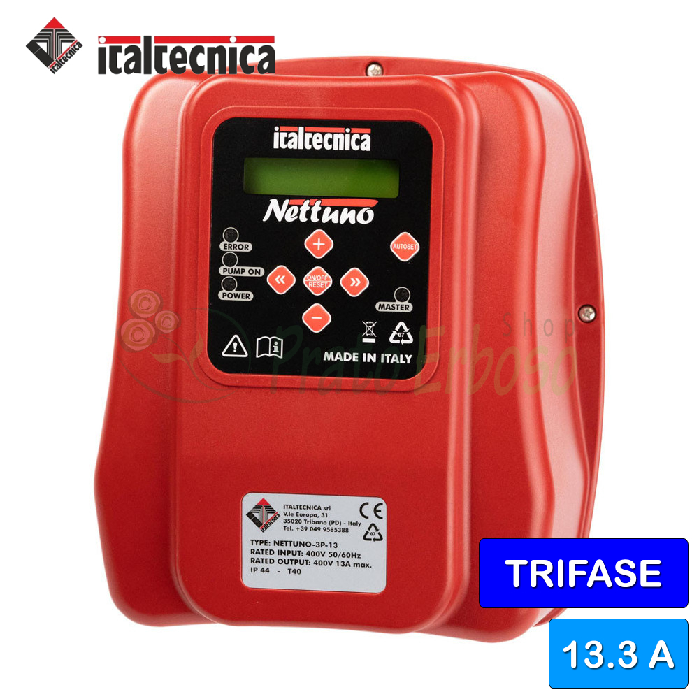 Le Nettuno Trifase est un dispositif électronique qui contrôle le démarrage et l'arrêt d'une pompe électrique, basé sur la technologie Inverter.