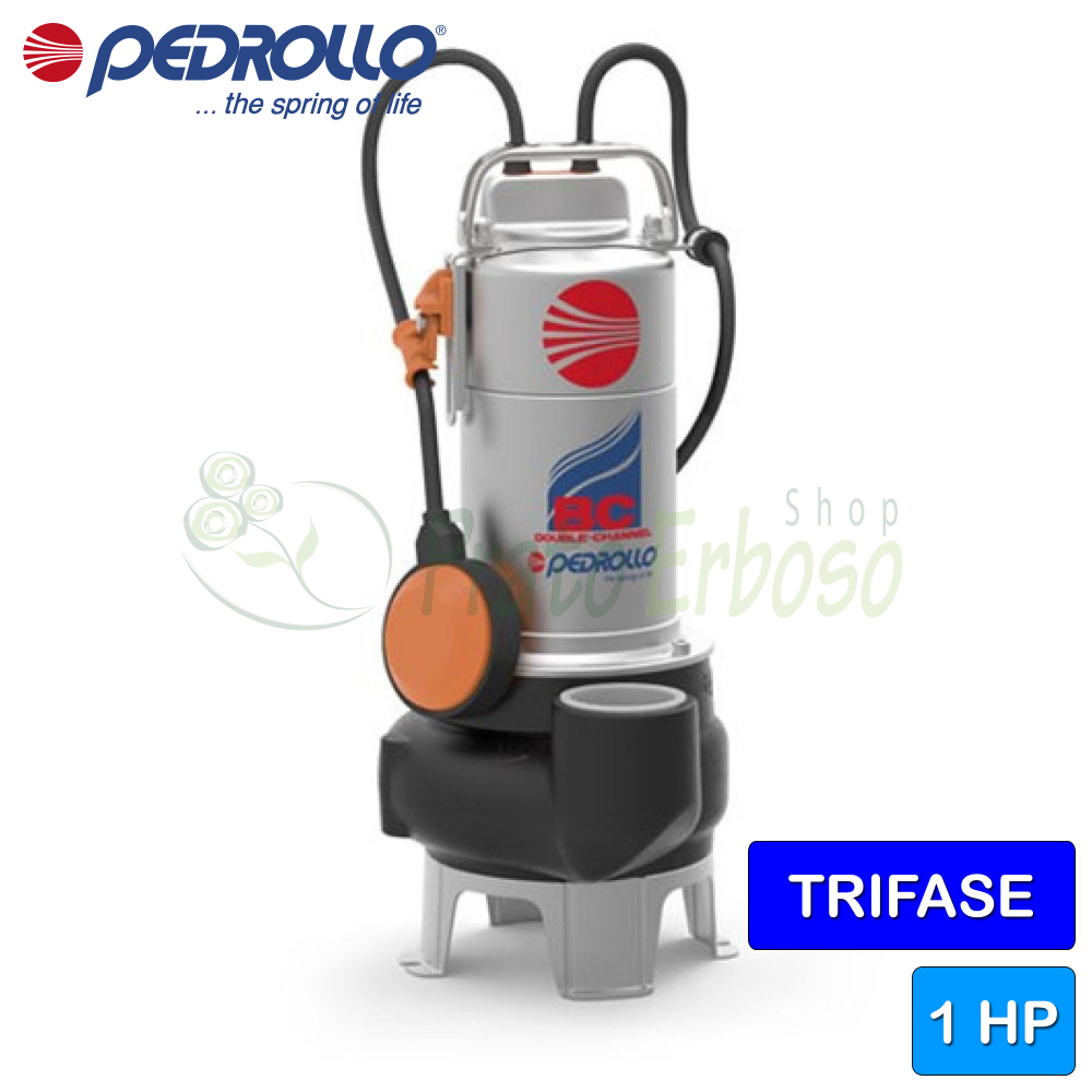 BC 10/50 (5 m) - Pompe électrique triphasée à double canal de 1 CV pour eaux usées