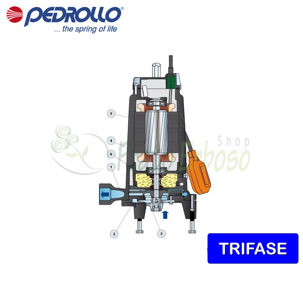 Pompe électrique submersible triphasée TR 1,3 - 1,75 CV avec broyeur