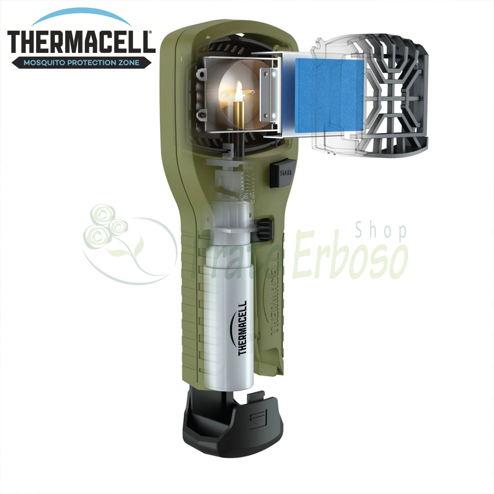 La fonte di calore necessaria proviene da una piccola e sicura cartuccia di gas butano che sprigiona il calore necessario ad emanare il principio attivo contenuto nelle speciali piastrine Thermacell.