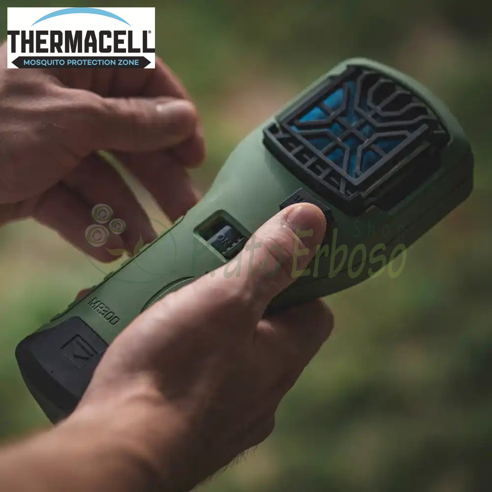 Il portatile antizanzare MR300 della Thermacell è un innovativo sistema evaporatore di piastrine insetto-repellente senza fili e senza batterie per uso esterno.