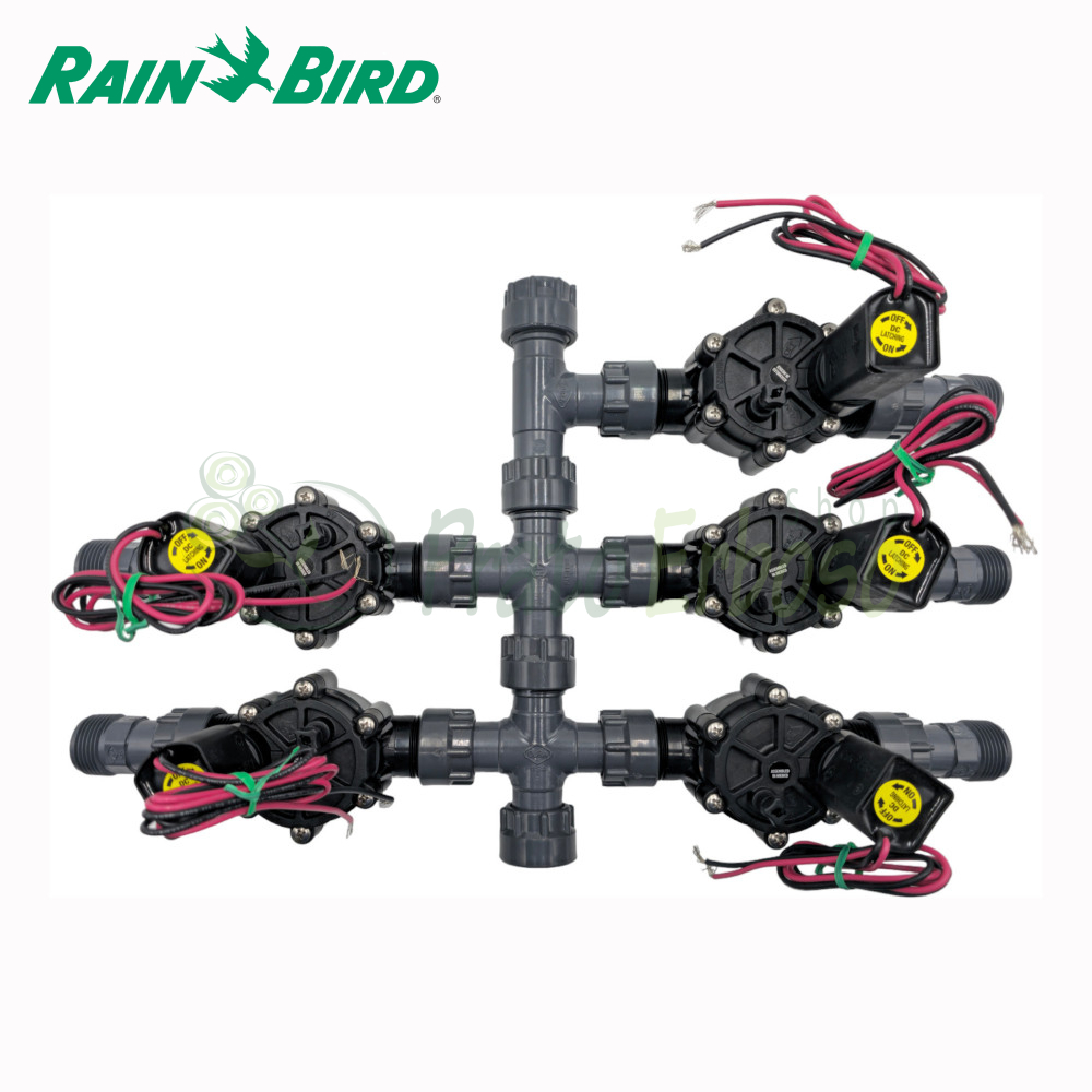 Il collettore assemblato Prato Erboso è un sistema che permette di semplificare la realizzazione dell'impianto di irrigazione in maniera professionale senza il problema di dover scegliere i componenti per realizzarlo. Esso infatti include raccordi bocchettonati in PVC di alta qualità ed elettrovalvole Rain Bird. Dovrete aggiungere solo i raccordi a compressione per i collegamenti alle tubazioni che sceglierete a seconda della dimensioni delle tubazioni che vorrete utilizzare tra DN16, DN20, DN25, DN32.