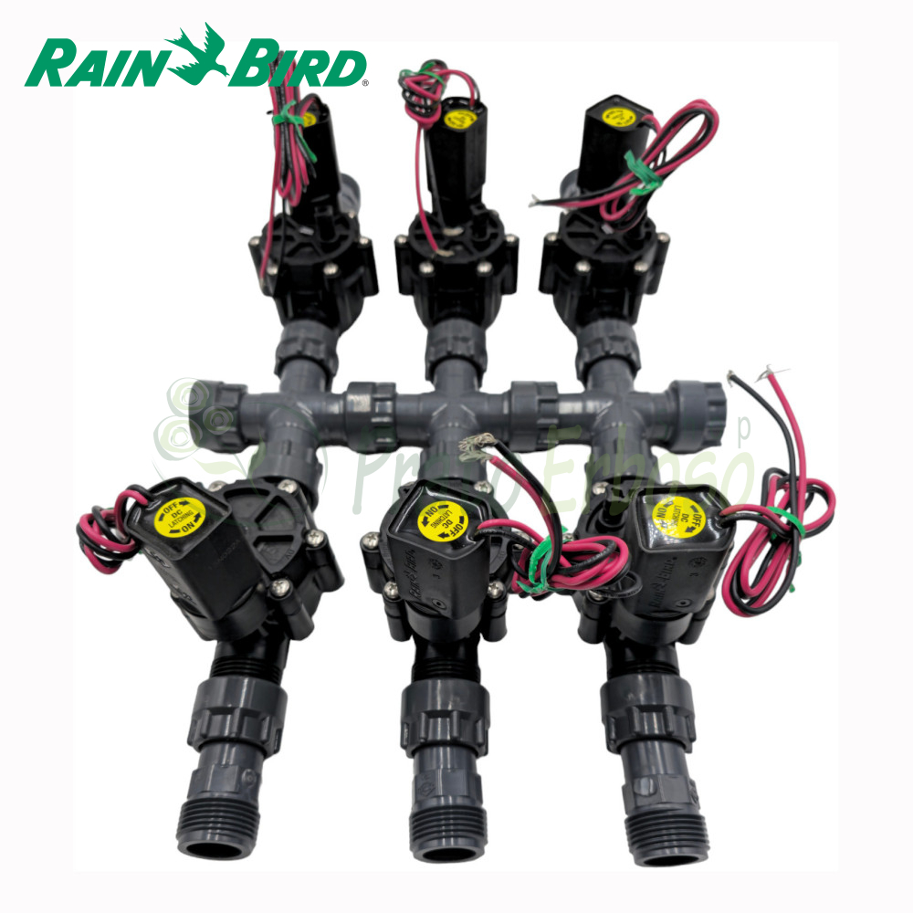 Il collettore assemblato Prato Erboso è un sistema che permette di semplificare la realizzazione dell'impianto di irrigazione in maniera professionale senza il problema di dover scegliere i componenti per realizzarlo. Esso infatti include raccordi bocchettonati in PVC di alta qualità ed elettrovalvole Rain Bird. Dovrete aggiungere solo i raccordi a compressione per i collegamenti alle tubazioni che sceglierete a seconda della dimensioni delle tubazioni che vorrete utilizzare tra DN16, DN20, DN25, DN32.