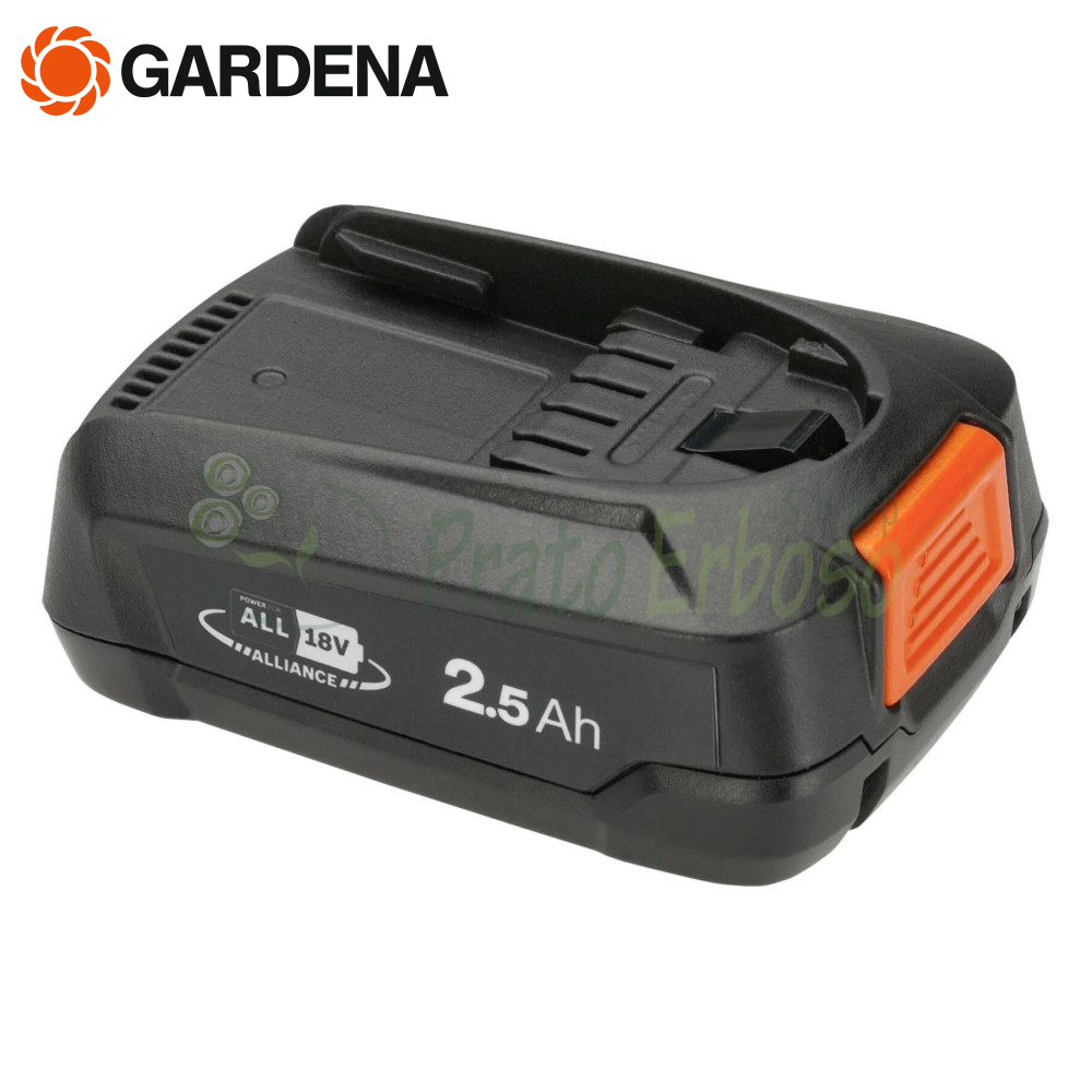 Con la sua capacità di 2.5 ampere è compatibile con tutti gli attrezzi GARDENA 18V POWER FOR ALL.