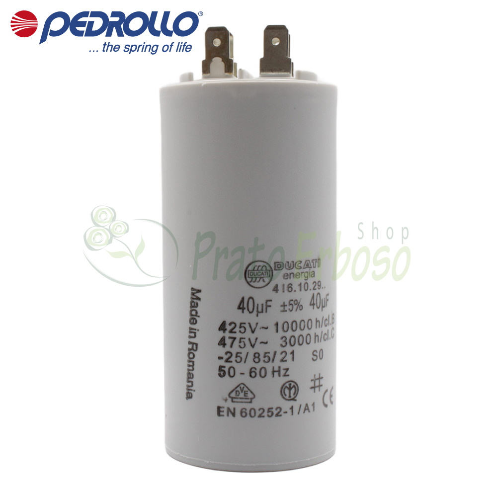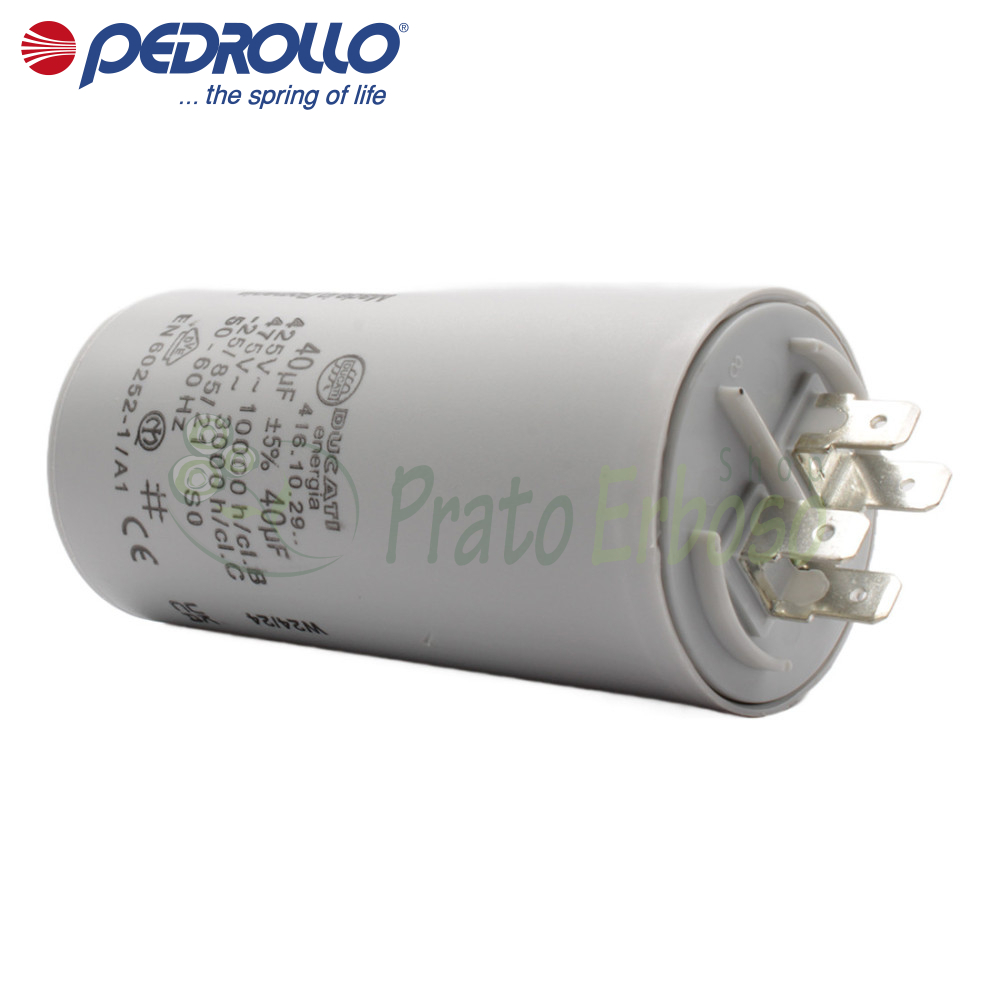Ricambio per Pedrollo. Con attacco faston. Omologato VDE-IMQ.