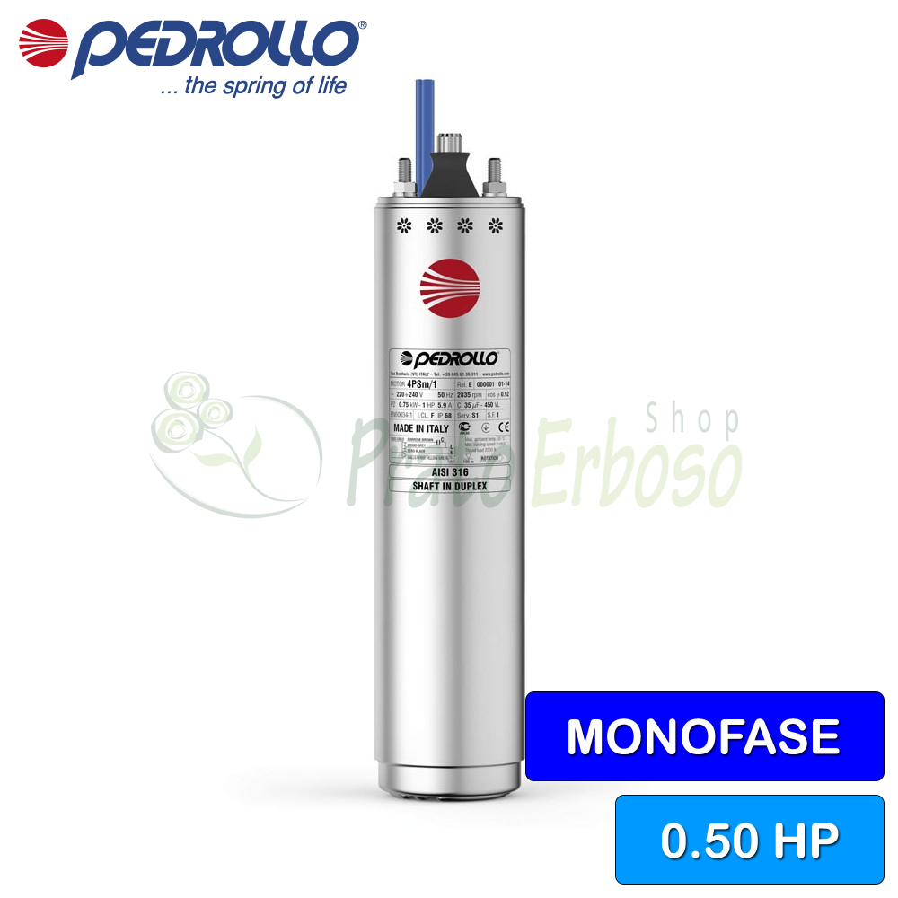 4PDm/1 - Motore riavvolgibile 4" da 1 HP monofase 319,64 €175,80 € In magazzino -