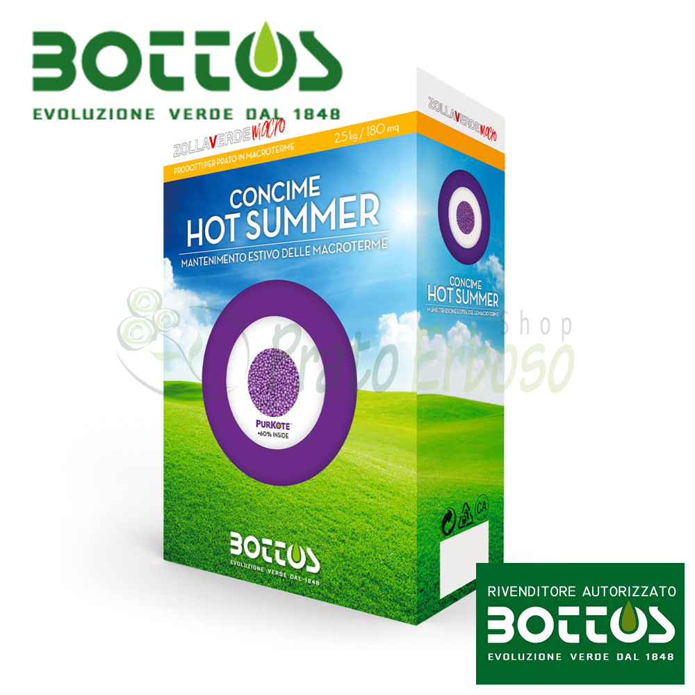 Il fertilizzante Hot Summer della Bottos offre la soluzione perfetta quando il sole estivo mette alla prova il tuo prato e gli permette di superare il caldo estivo.