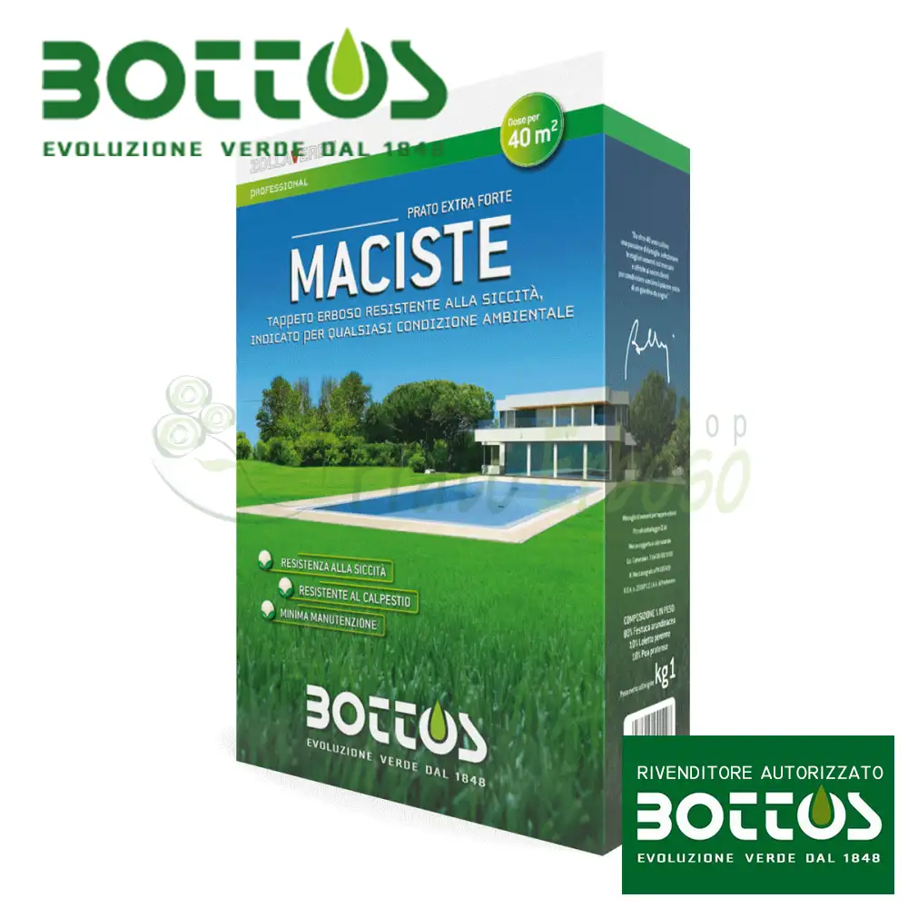 Le sementi Maciste della linea Zolla Verde di Bottos sono un miscuglio di festuca arundinacea, poe pratensi e loietti, per la realizzazione di tappeti erbosi per aree ornamentali, sportive e ricreazionali.