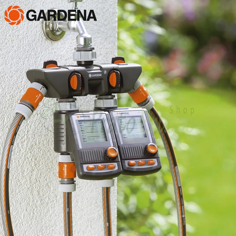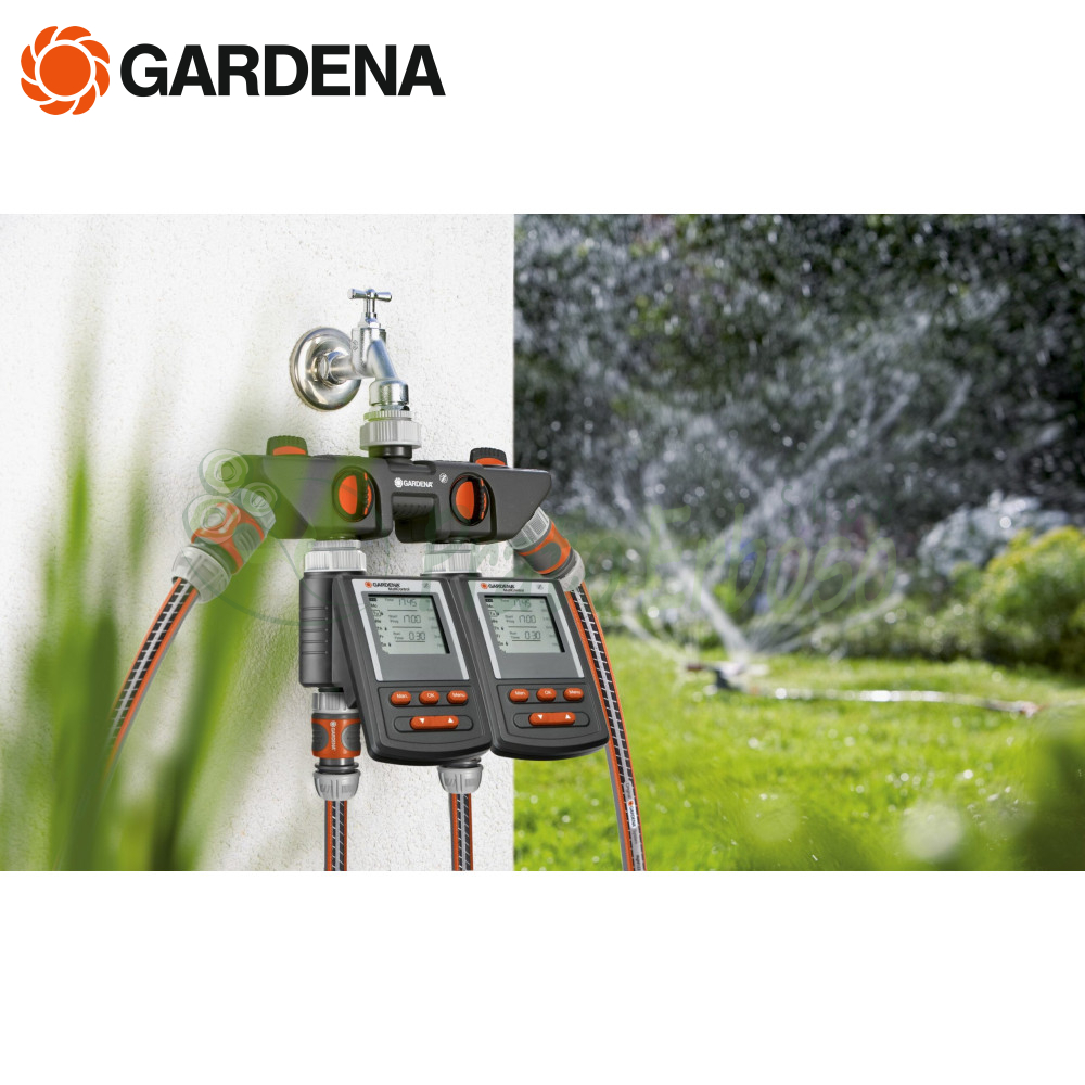 È possibile collegare al distributore a 4 vie due computer per irrigazione o watertimer elettronici Gardena.