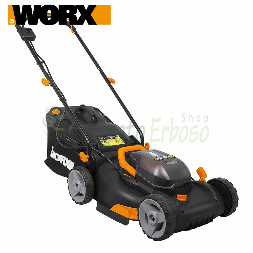 Il rasaerba WG743E di Worx ha un'ampiezza di taglio 40 centimetri ed è la soluzione ideale per un giardino dai 400 ai 550 metri cubi.