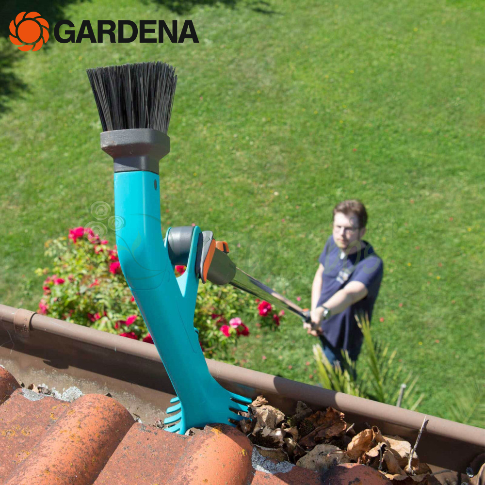 Acest curățător de jgheaburi este compatibil cu toate mânerele combisystem Gardena , totuși în acest caz recomandăm un mâner telescopic, 3721-20, pentru a ajunge până la 5 metri înălțime.
