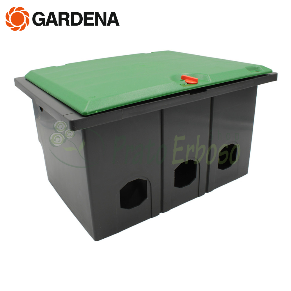 Cutia de supape precablată Gardena V3 1255-20 vă permite să instalați până la 3 electrovalve în subteran.