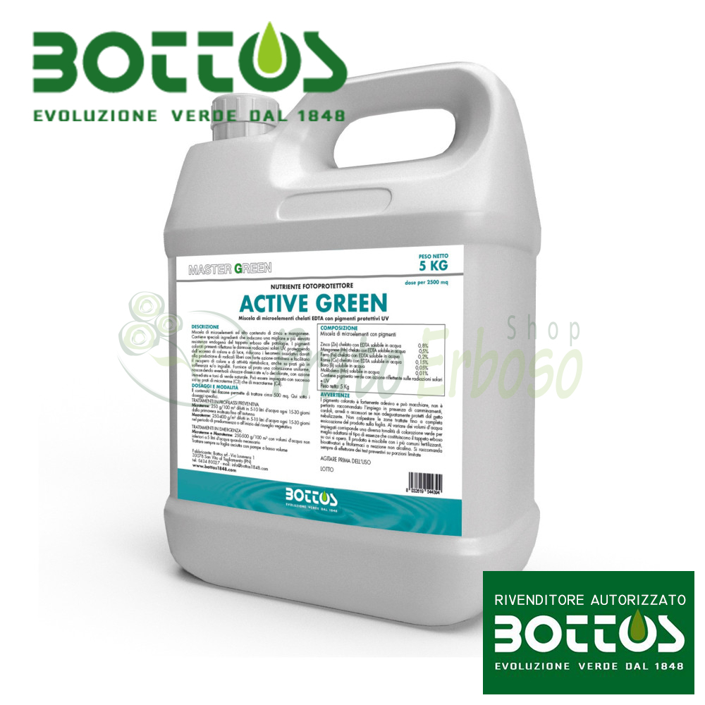 Active Green este un amestec de microelemente special conceput pentru a proteja gazonul de efectele negative datorate excesului de lumină și/sau căldură și permite recuperarea de la stresul care poate rezulta, garantând în același timp o culoare verde naturală imediată.