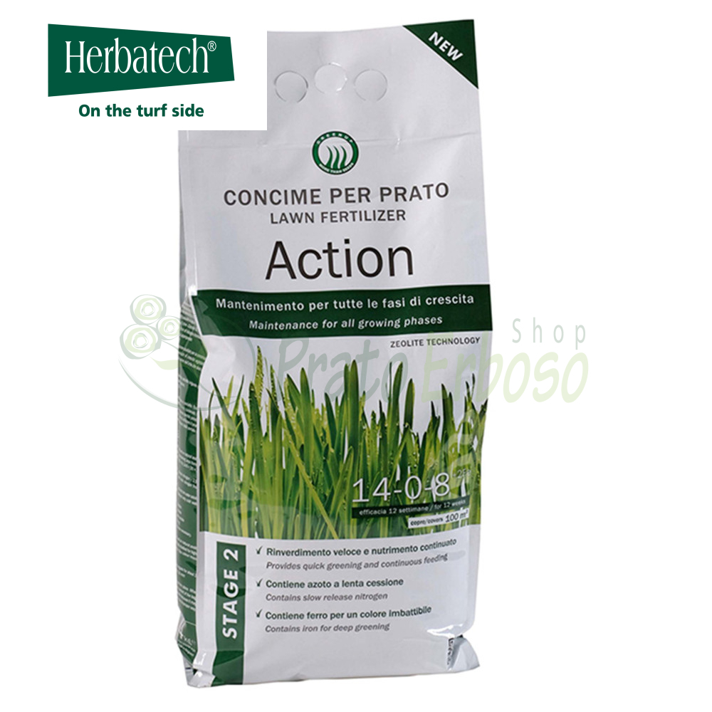 Este formulat pentru gazon utilizate intens și induce o culoare verde închis intens a ierbii la 5-6 zile de la distribuire. Eliberare lentă, își menține eficacitatea și culoarea închisă timp de aproximativ 10 săptămâni. Culoarea splendidă a Action se datorează componentei sale zeolitice și cantității mari de fier.