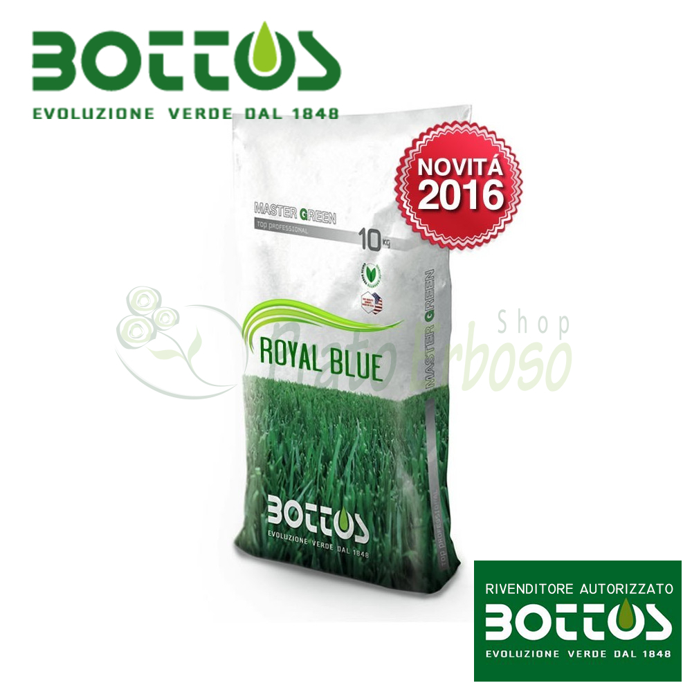 Le sementi Royal Blue Plus della linea Master Green Life di Bottos sono un miscuglio festuche e poe pratensi, per la realizzazione di aree pubbliche e giardini in zone soleggiate o di mezz'ombra.