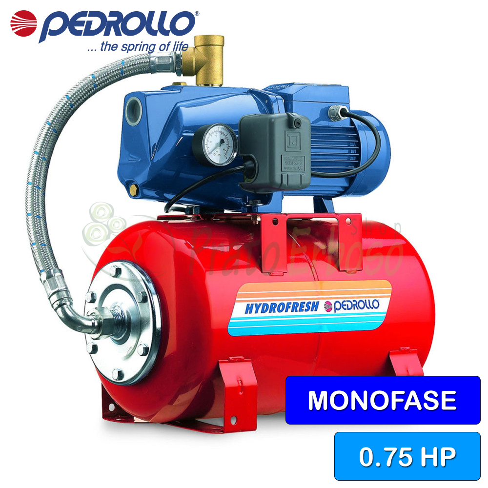 Debit de până la 90 l/min. Înălțime de pompare de până la 50 de metri. Motor de 0,55 kW (0,75 CP). Cu vas de expansiune cilindric orizontal de 24 de litri.