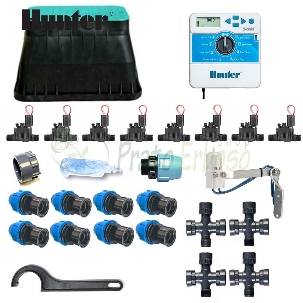 Kitul conține tot ce aveți nevoie, cu excepția aspersoarelor, pentru a uda automat 8 zone de irigații cu componente principale Hunter .