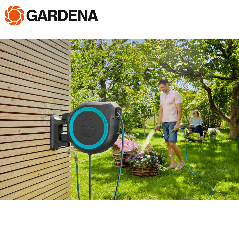 Cu ajutorul tamburului de furtun de perete RollUp M/L 18620-20 de Gardena , udarea gradinii devine o placere.