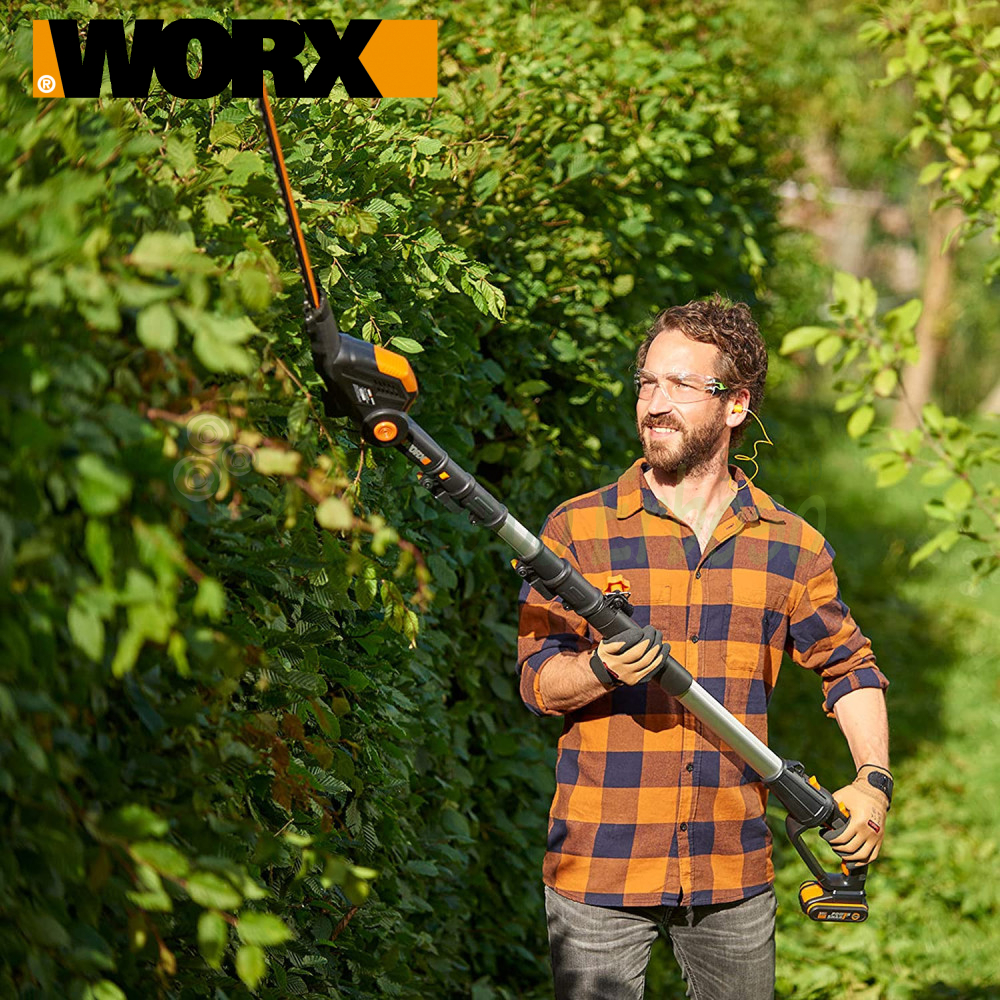 Mașina de tuns gard viu telescopic Worx WG252E este ideală pentru tăierea cu ușurință a frigaruilor.