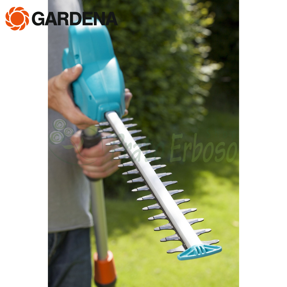 Mașina de tuns gard viu electric Gardena 8883-20 pentru tăierea vârfurilor de gard viu și la nivelul solului cu maximă ușurință.