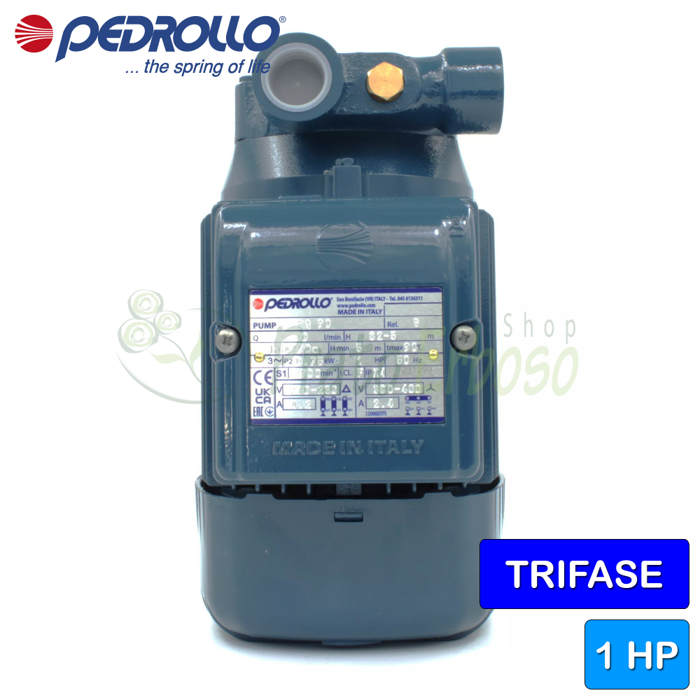 Debit de până la 40 l/min (2,4 m³/h). Cap până la 90 m. Motor de 0,75 Kw (1 CP).
