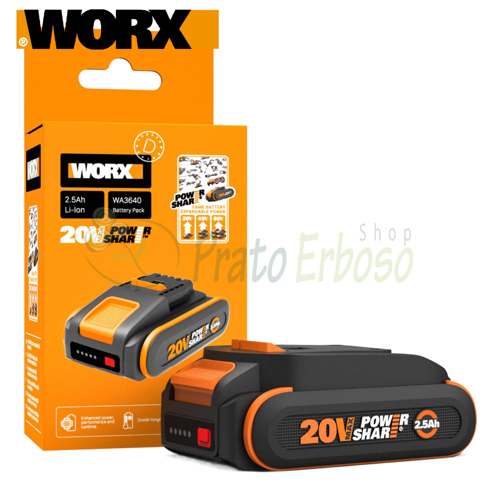 Worx WA3639 este o baterie compatibilă cu toate sculele electrice din familia Worx Power Share.