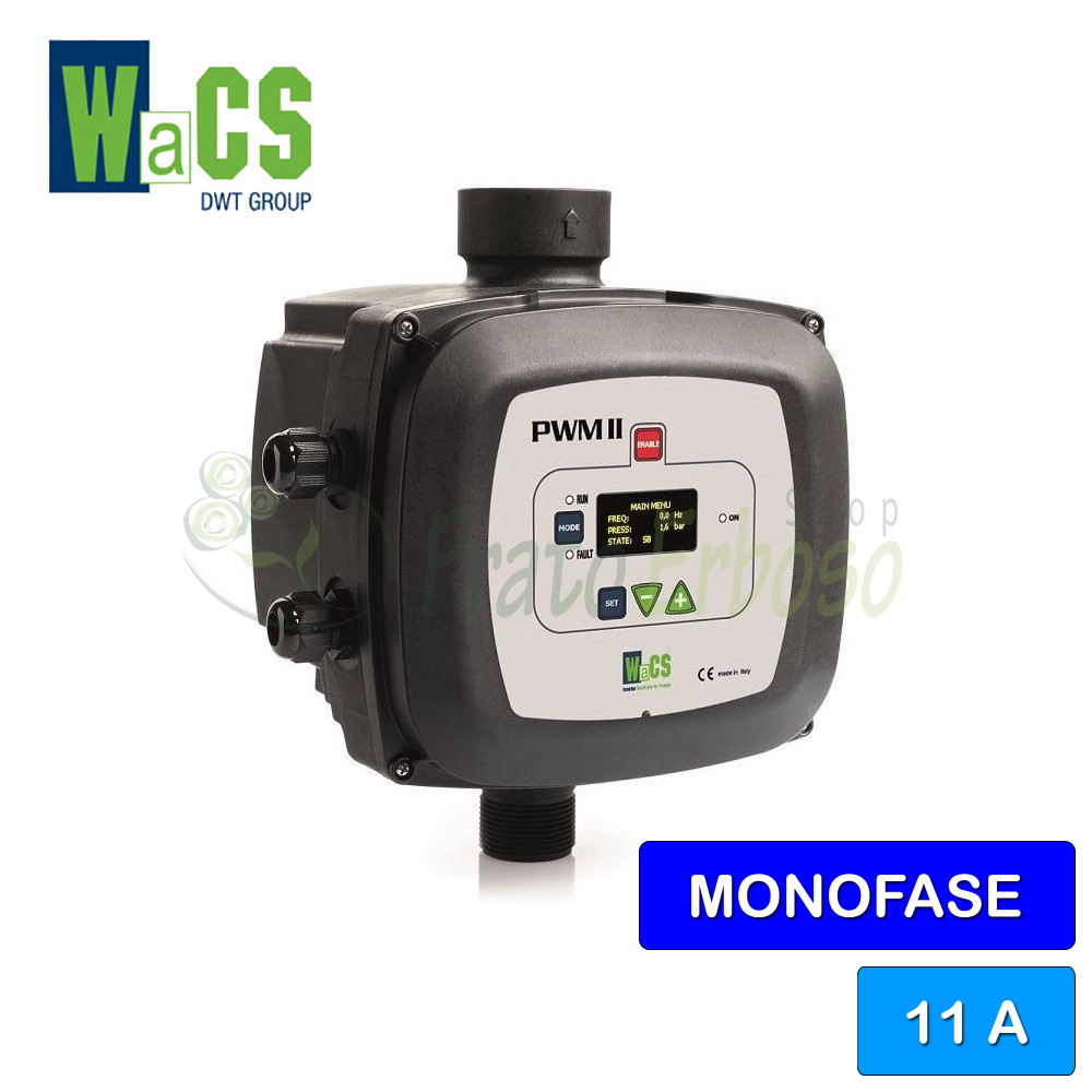 PWM II 230 1 Basic DV/11 utilizează alimentare monofazată pentru pompe monofazate de până la 2 CP, furnizând un curent maxim de 11 amperi.