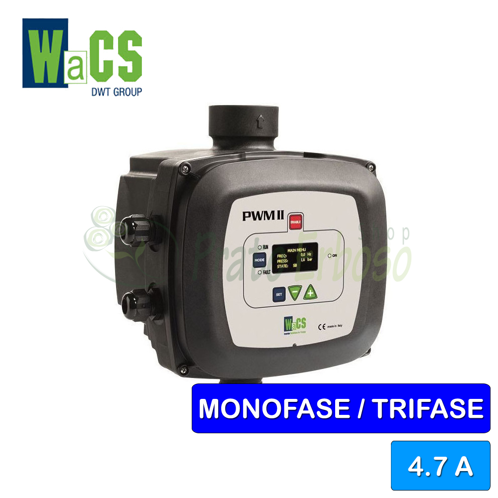 Invertorul WaCS PWM II 230 D/4.7 este introdus în partea de refulare a unei pompe și o controlează pentru a menține o presiune constantă, gestionând pornirea, oprirea și defecțiunile acesteia în funcție de nevoile de utilizare ale sistemului și de condițiile hidraulice generale.