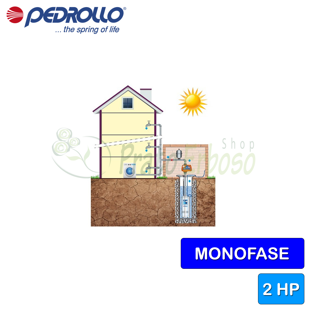 Are o putere de 2 CP. Debitul variază de la 10 la 80 de litri pe minut, iar înălțimea de la 48 la 97 de metri.