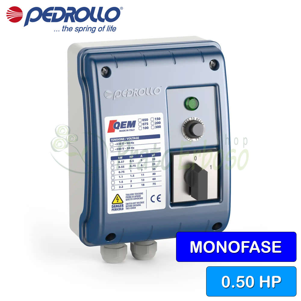 QEM 050 - Tablou electric pentru pompă electrică monofazată de 0,50 CP