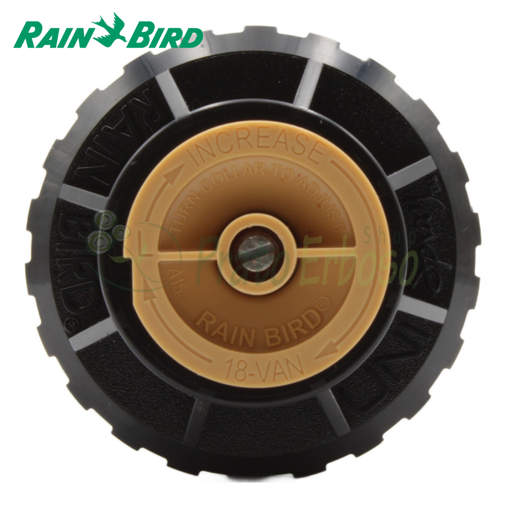 Echipat cu duzele excepționale Rain Bird 18-VAN care asigură o picătură mai mare, care udă mai bine și rezistă vântului, permițându-vă în consecință să economisiți până la 35% din apă.