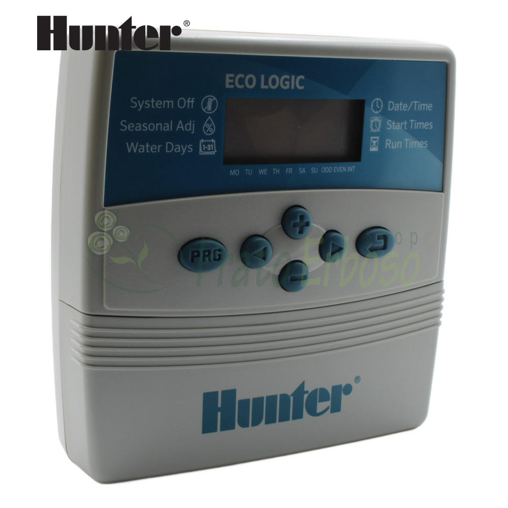 Controlerul Hunter Eco Logic este dotat cu funcții sofisticate, cum ar fi programarea cu un singur buton, Hunter Quick Check, două programe independente cu câte patru ore de pornire fiecare, un calendar de 365 de zile pentru udarea în zile pară sau impare, reglarea sezonieră de la 10% la 150%, compatibilitatea senzorilor meteo și memoria permanentă.