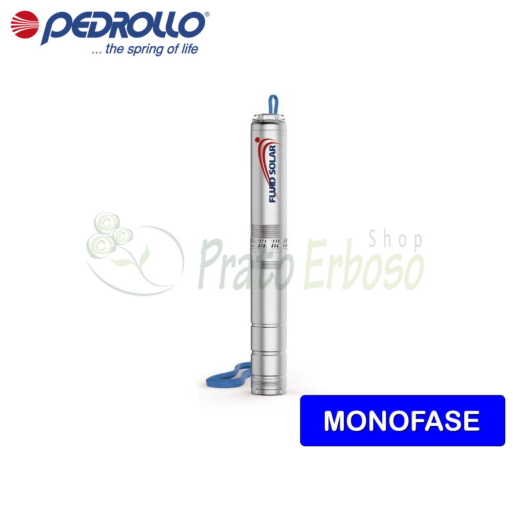 Kompleti i pompës elektrike diellore FLUID SOLAR 1/20 1500 vat nga Pedrollo ka një shpejtësi rrjedhjeje prej 5 deri në 40 litra në minutë dhe një presion prej 41.5 deri në 187 metra.