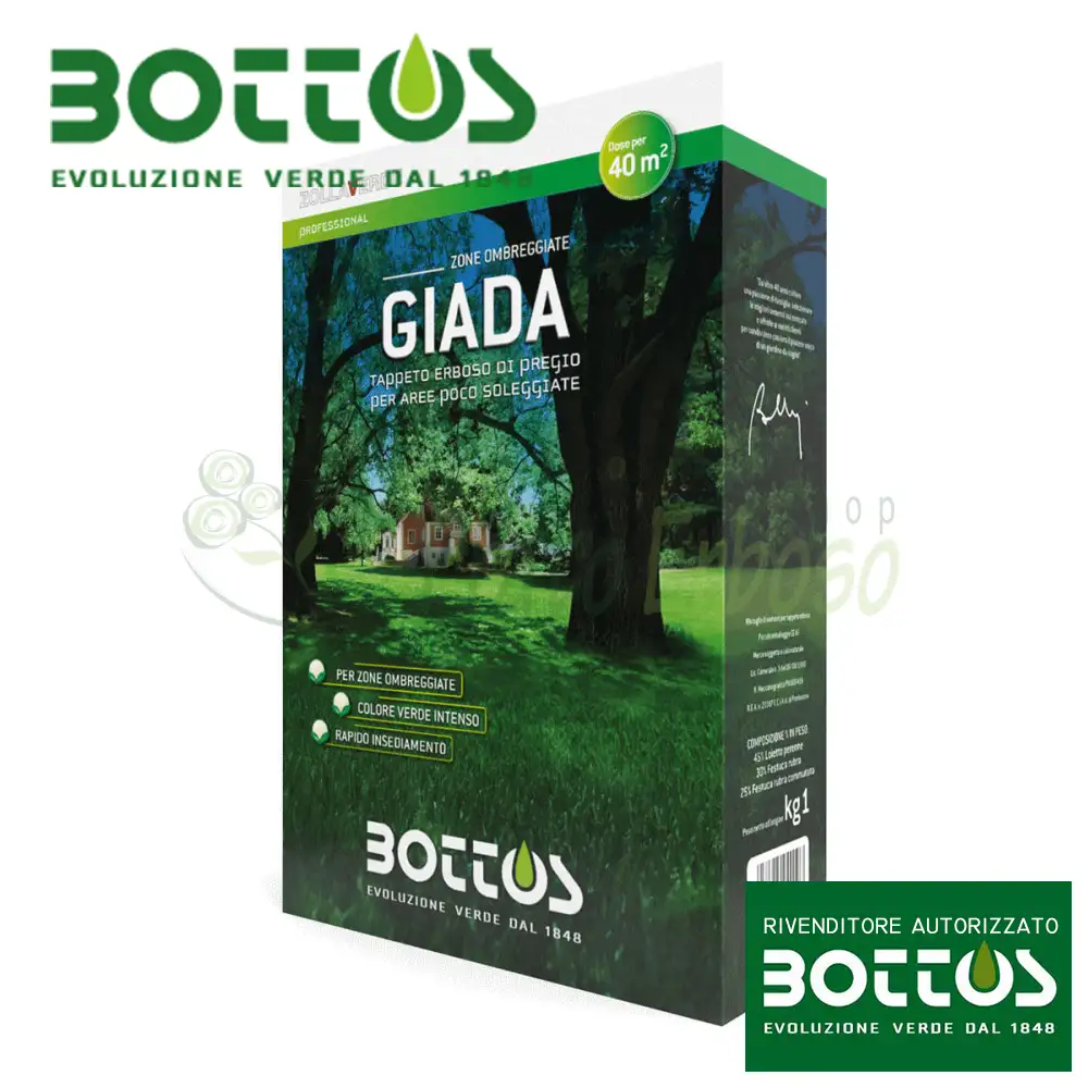 Farat Giada nga linja Zolla Verde nga Bottos janë një përzierje e ryegrass dhe fescue, për krijimin e terrenit për zonat dekorative në zonat me hije.