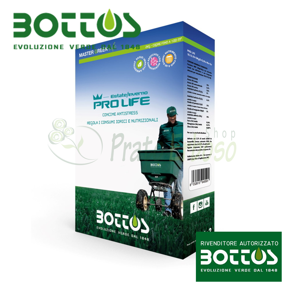 Bottos Pro Life 10-5-15 është një pleh kundër stresit që mund të përdoret në verë, vjeshtë dhe dimër i cili kombinon aspektin ushqyes të bimëve me pasurimin e pjellorisë së tokës. Ai gjithashtu promovon një rritje të kapacitetit të shkëmbimit të kationeve dhe lejon ruajtjen më të mirë fizike të lëndëve ushqyese brenda granulave. Përmban përqindje të lëndës organike fisnike me origjinë ekskluzivisht vegjetale.