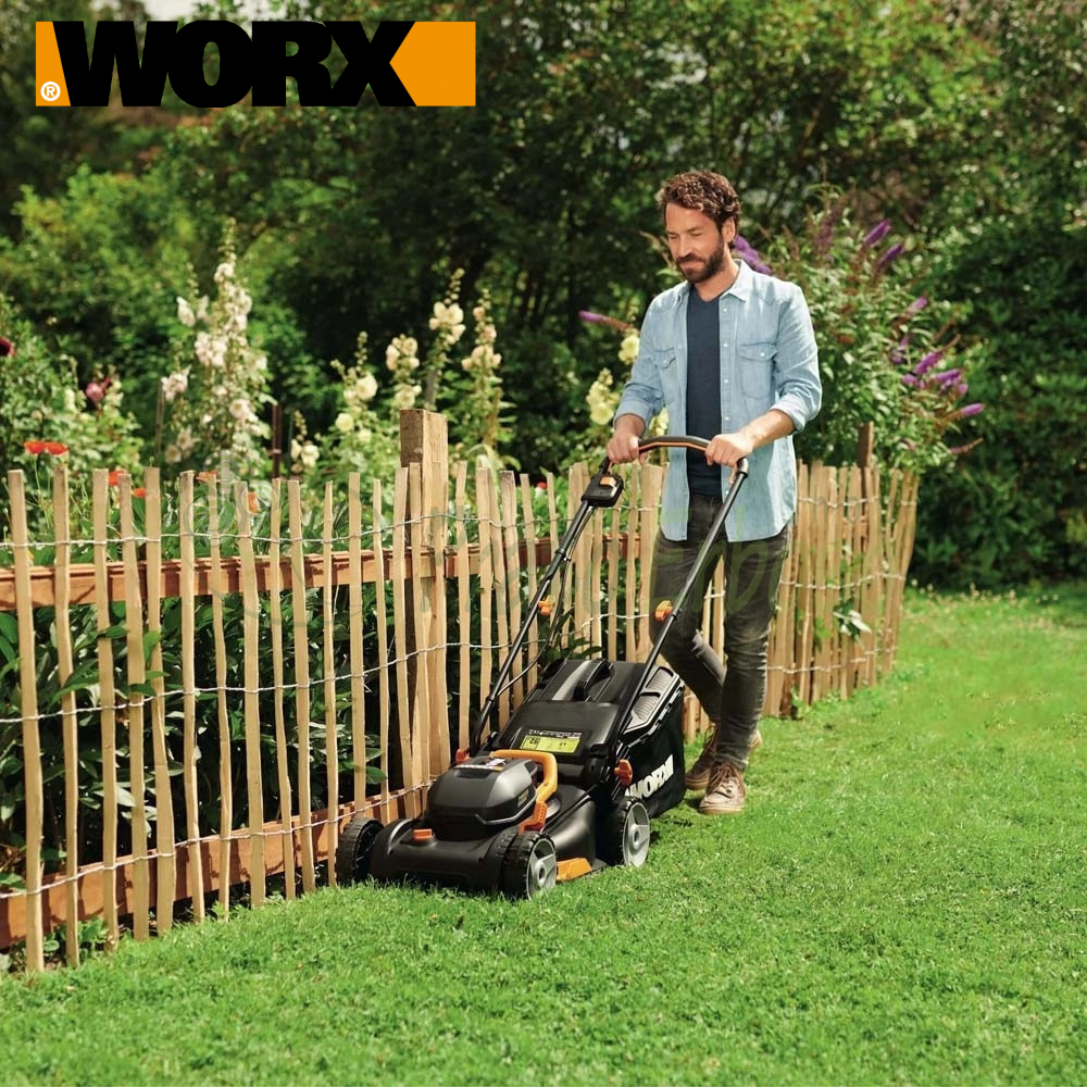 Kositësja e barit Worx WG743E ka një gjerësi prerjeje prej 40 centimetra dhe është zgjidhja ideale për kopshte prej 400 deri në 550 metra kub.