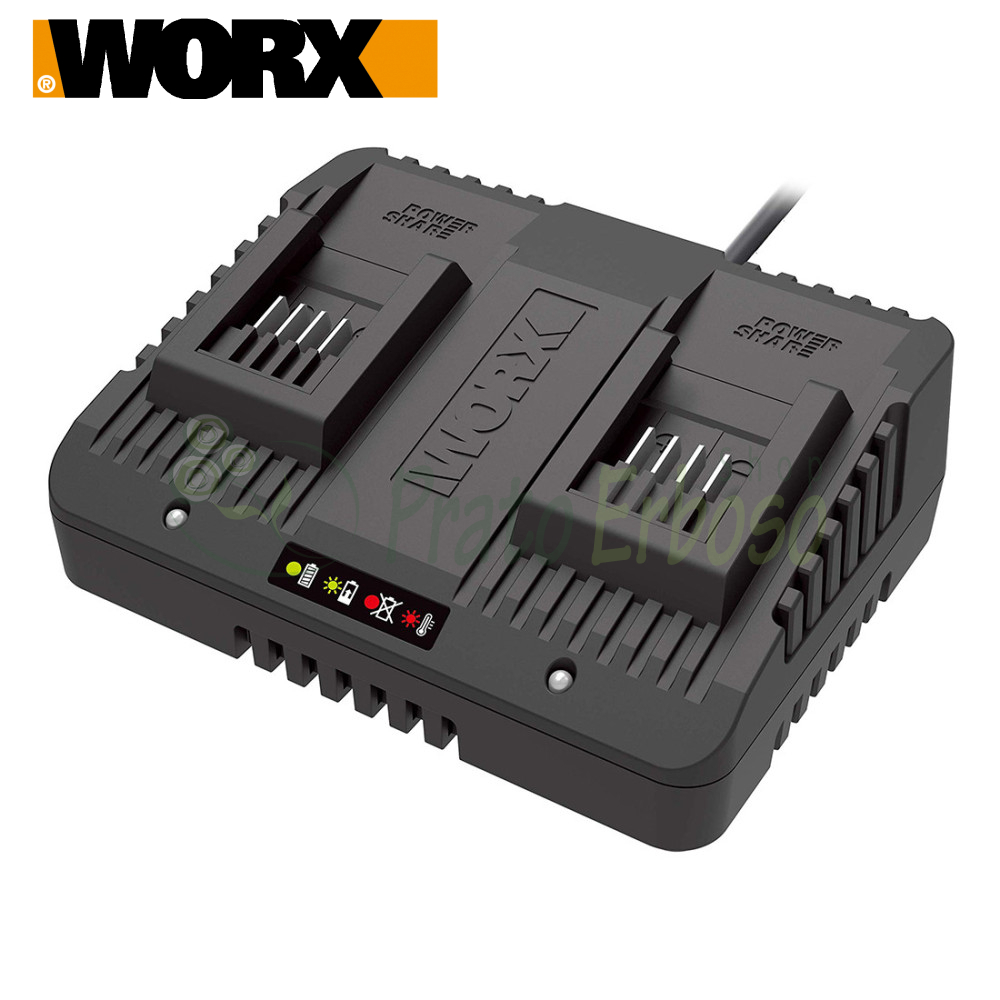 Stacioni Worx WA3772 ju lejon të karikoni 2 bateri në të njëjtën kohë.