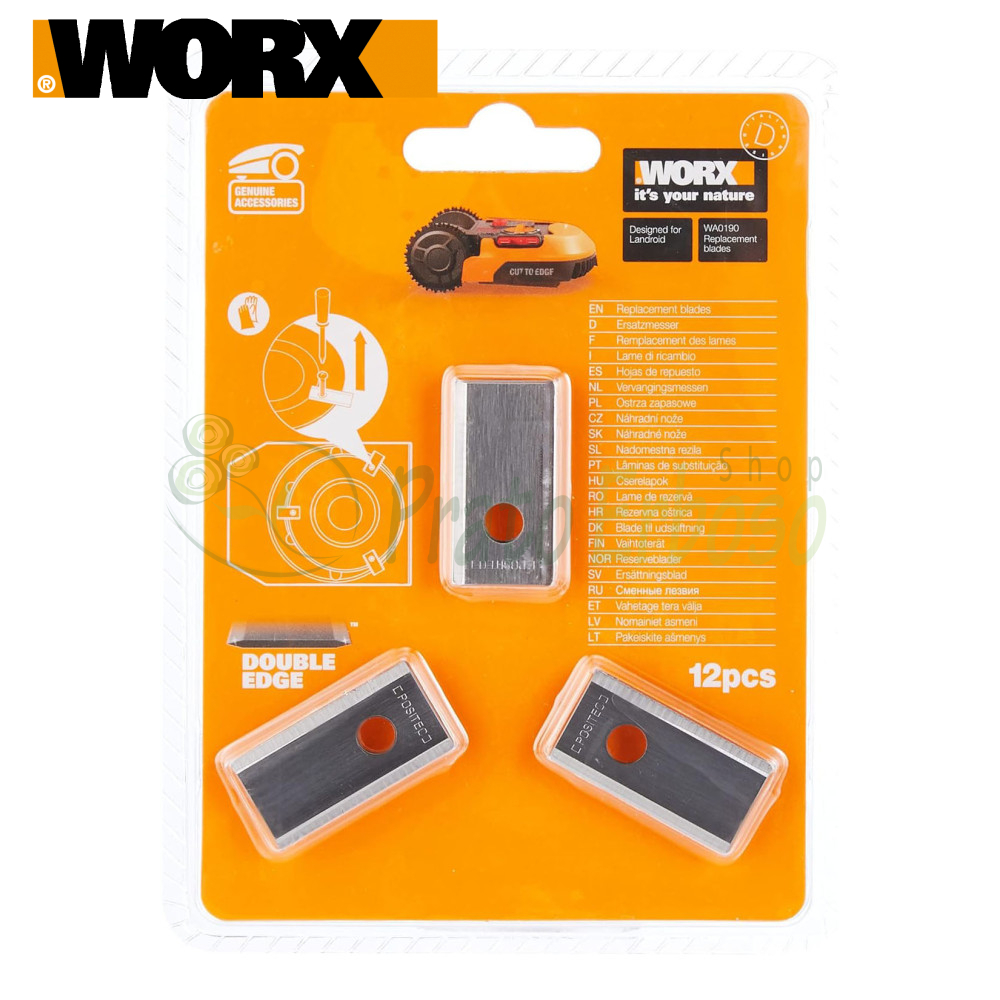 Seti përbëhet nga 12 tehe zëvendësuese me kodin 50032269 për modelet e kositëses robotike Landroid M WG790E, WG790E.1, WG792, WG794E, WG795E, WR105SI, WR105SI.1, WR130E, WR141E, WR142E, WR143E, WR147E, WR147E.1, WR148E, WR153E, WR155E, WR165E, WR167E, WR184E, WR206E, WR208E, WR213E dhe WR216E nga Worx .