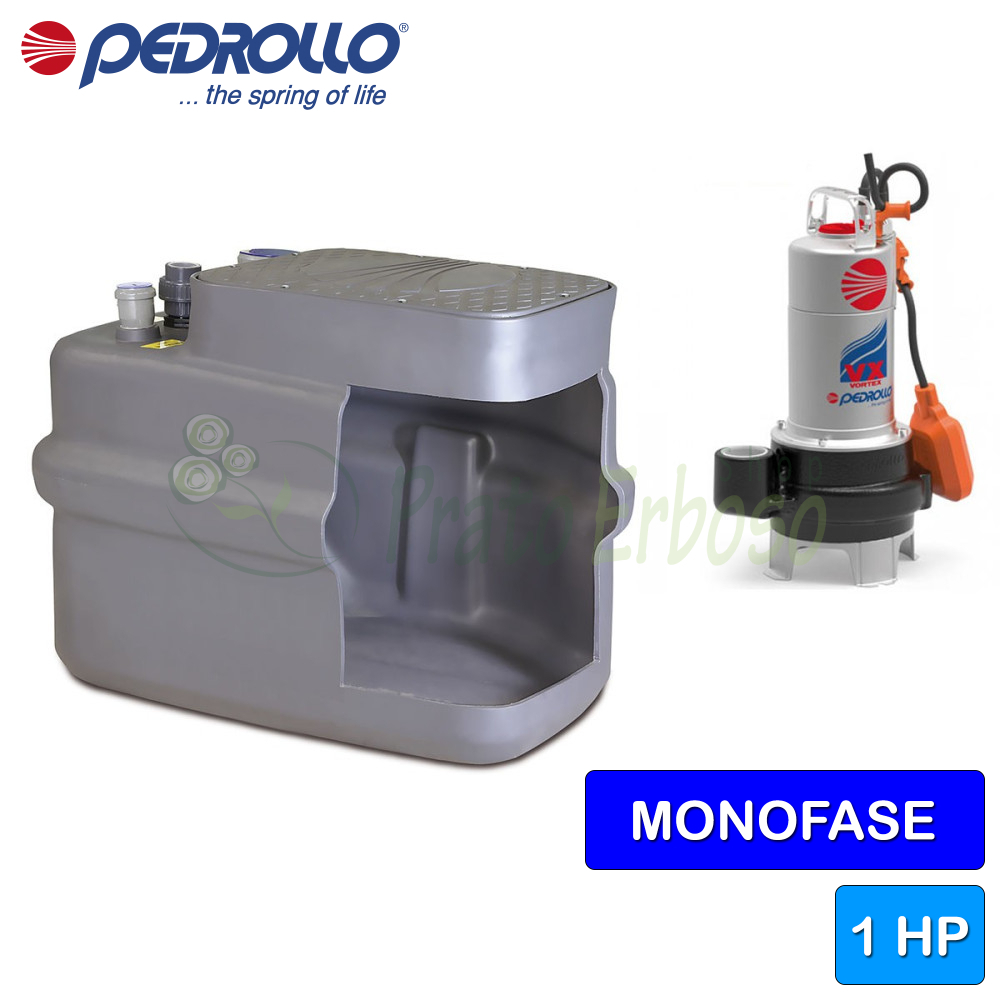Rezervuar 100 litra. Pompë Pedrollo VXm 10/35. Shkalla e rrjedhjes së shkarkimit deri në 400 l/min (24 m³/h). Koka deri në 10 m. Motor 0.75 kW (1 HP).