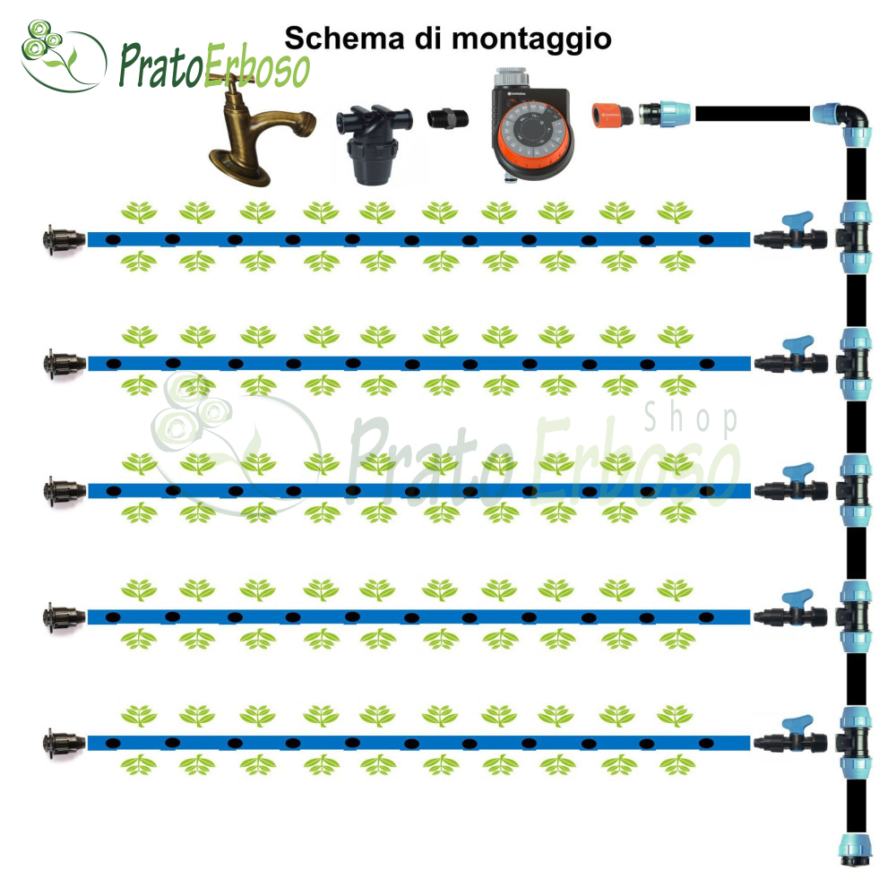 Prato Erboso orto e giardino Pro është një komplet i plotë dhe i lehtë për t’u instaluar që ju lejon të krijoni një sistem ujitjeje duke e ndarë atë në zona të pavarura me kohë të ndryshme.